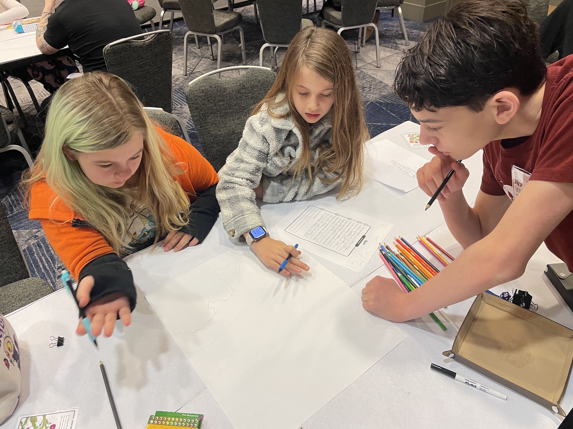 Since everything was pure improvisation, I decided to keep it simple. An important caravan has gone missing, I told them. I worked with the kids to figure out why they needed to go find it. Our youngest little guy blurted out, “my wife and child were on that caravan!” Now there’s someone with a future in gaming, I thought.